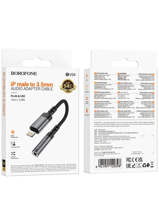 Переходник Borofone BV24 Graceful Lightning to 3.5mm