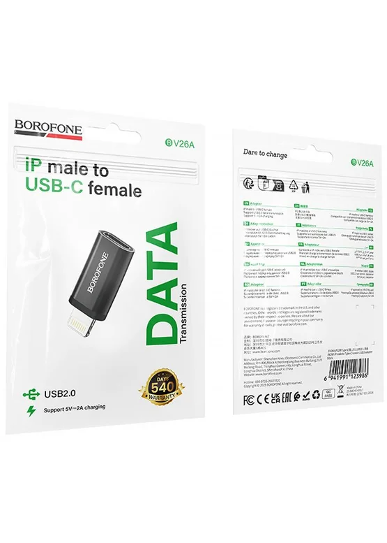Переходник Borofone BV26A Lightning Male to Type-C Female USB2.0 Black
