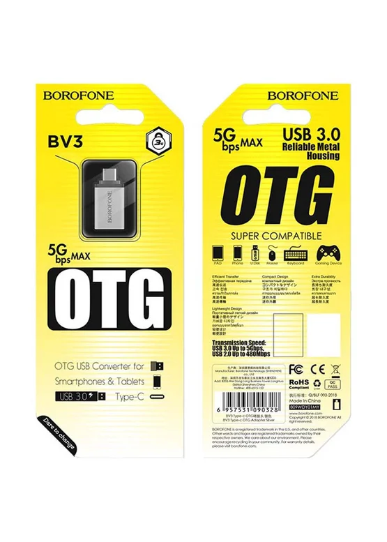 Переходник Borofone BV3 OTG to Type-C Серебряный