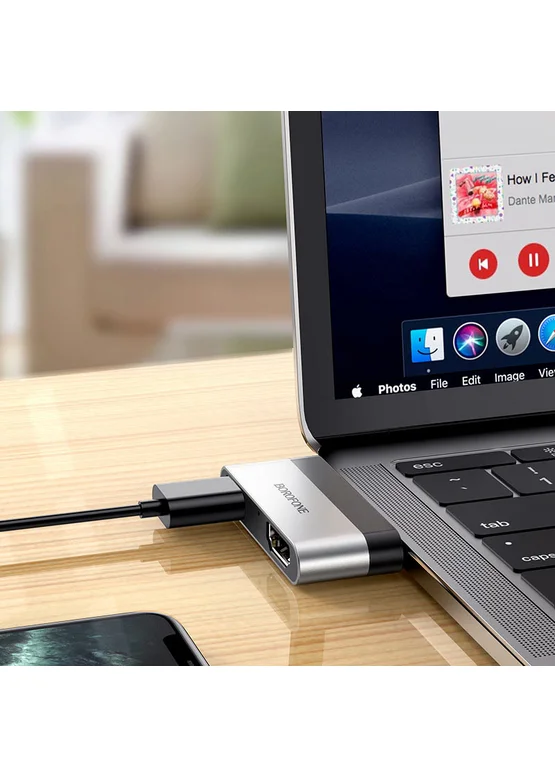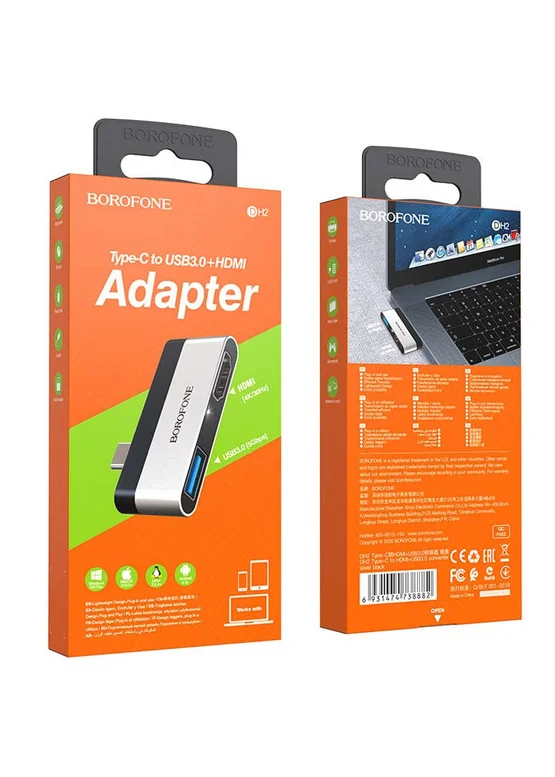 Переходник Borofone DH2 Type-C to HDMI+USB3.0 Серебряный / Черный