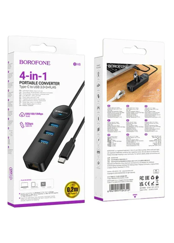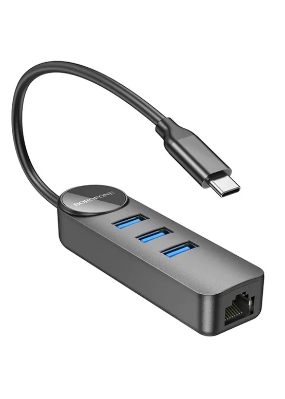 Переходник Borofone DH6 Erudite 4in1 Gigabit Ethernet (Type-C to USB3.0*3+RJ45) (0.2m)