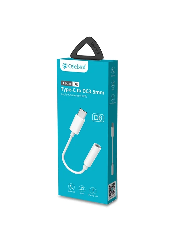 Переходник Celebrat D8 Type-C - 3.5 AUX (Белый)