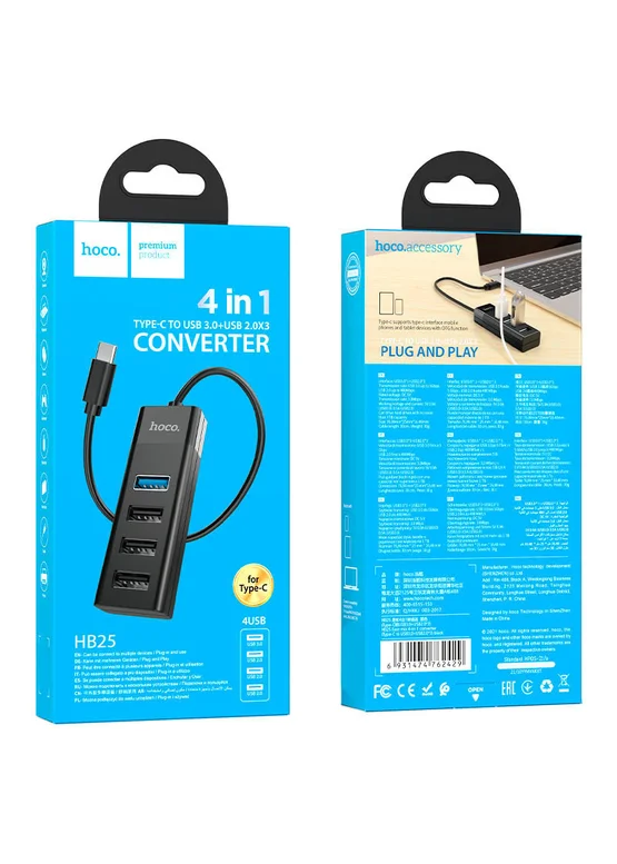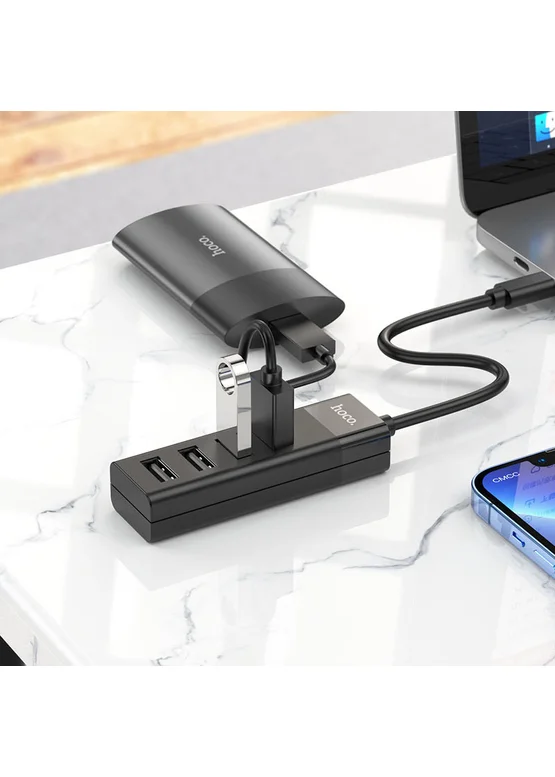 Переходник Hoco HB25 Easy mix 4in1 (Type-C to USB3.0+USB2.0*3) Черный