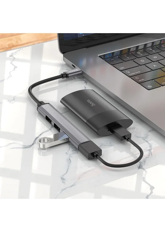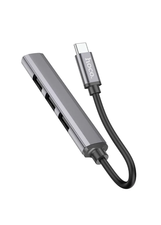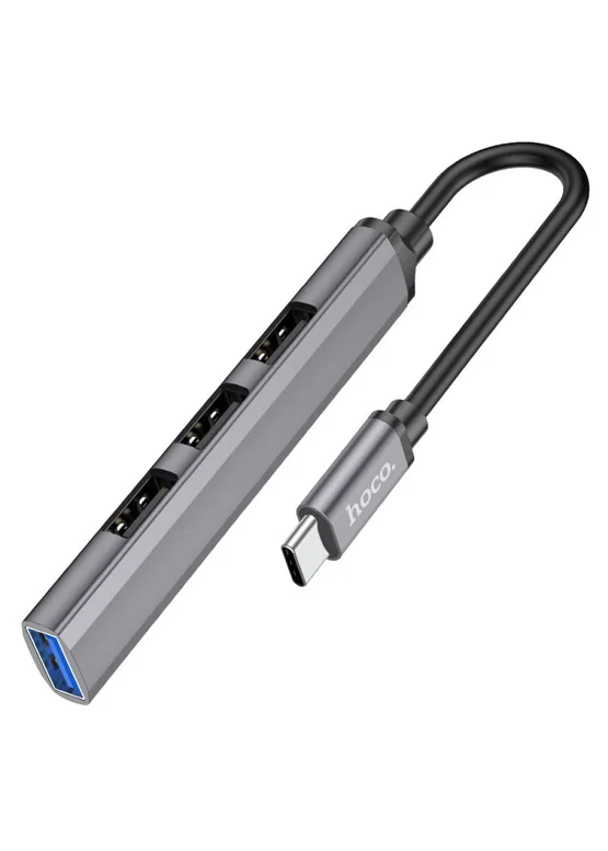 Переходник Hoco HB26 4in1 (Type-C to USB3.0+USB2.0*3) Metal gray