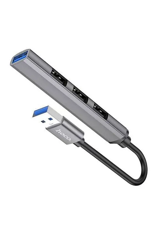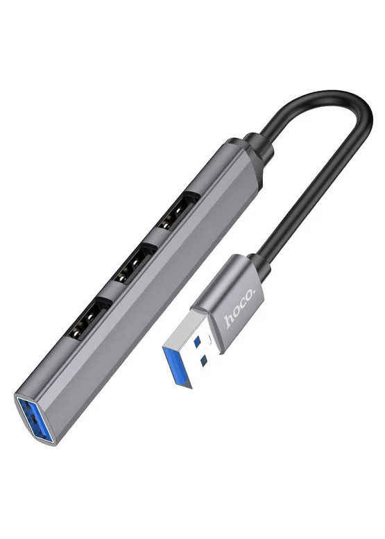 Переходник Hoco HB26 4in1 (USB to USB3.0+USB2.0*3) Metal gray