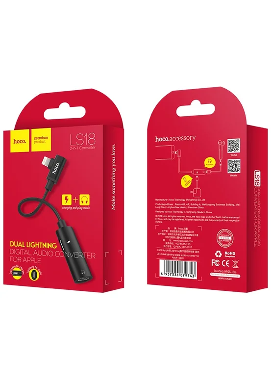 Переходник Hoco LS18 "Tanco" Dual Lightning (Черный)