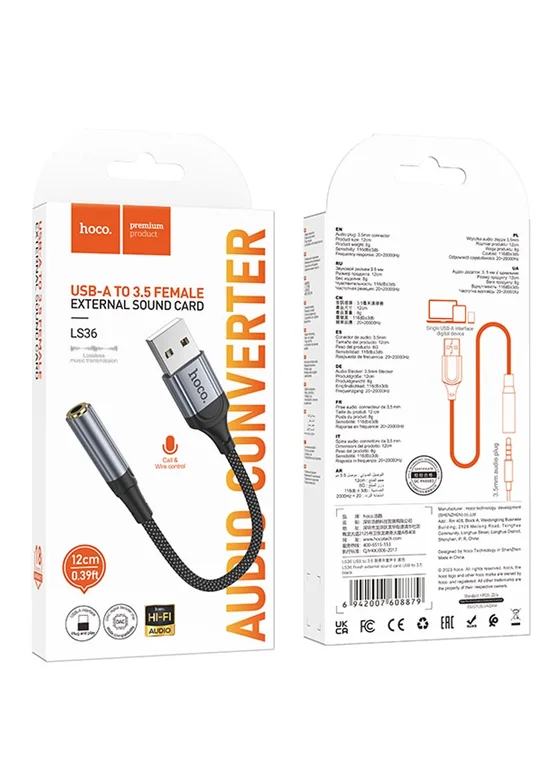 Переходник Hoco LS36 Fresh USB to 3,5 AUX