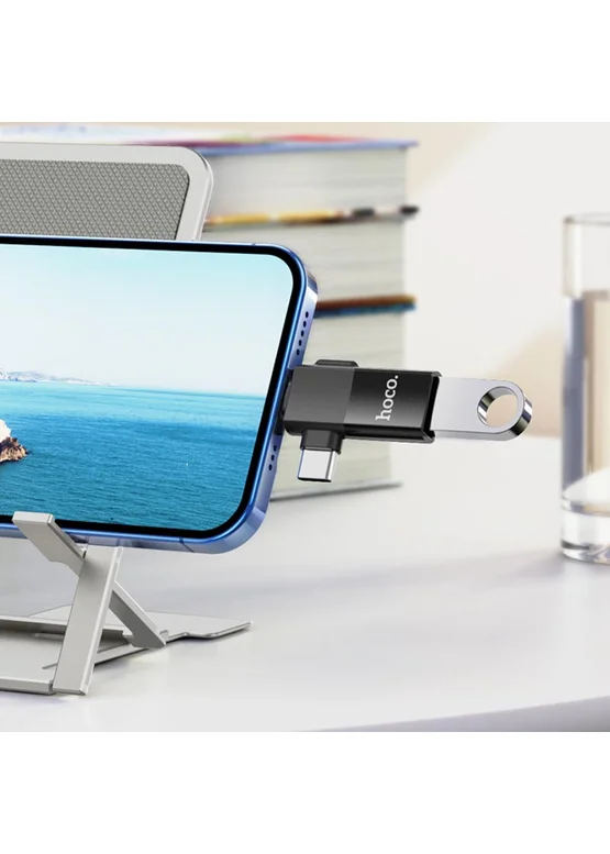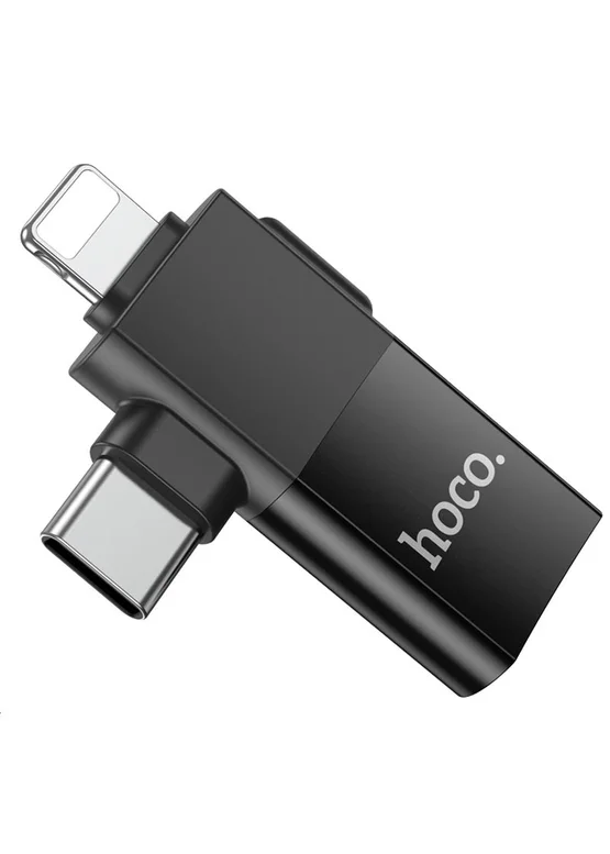 Переходник Hoco UA17 2in1 Lightning Male/Type-C Male to USB female Black