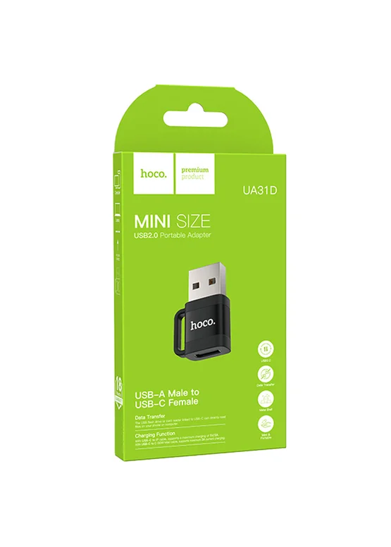 Переходник Hoco UA31D OTG USB male to Type-C female USB2.0 Black