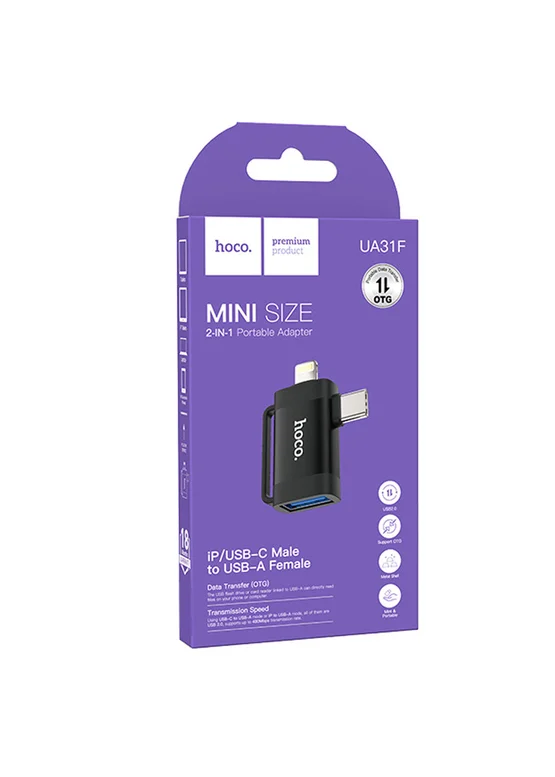 Переходник Hoco UA31F OTG 2in1 Lightning male/Type-C male to USB female Black