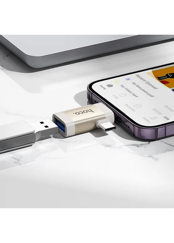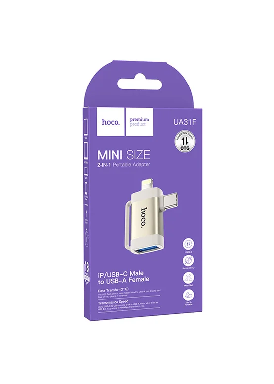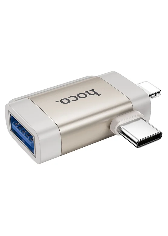 Переходник Hoco UA31F OTG 2in1 Lightning male/Type-C male to USB female Gray