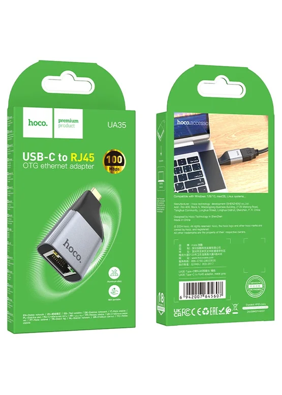 Переходник Hoco UA35 Type-C to RJ45 Metal grey