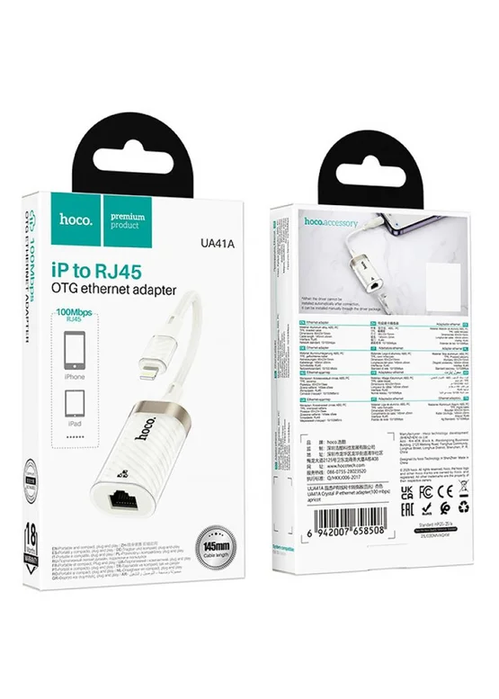 Переходник Hoco UA41A Crystal Lightning to RJ45 100 Mbs (0.15m) Apricot