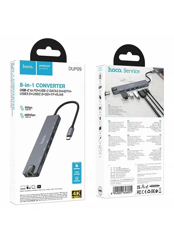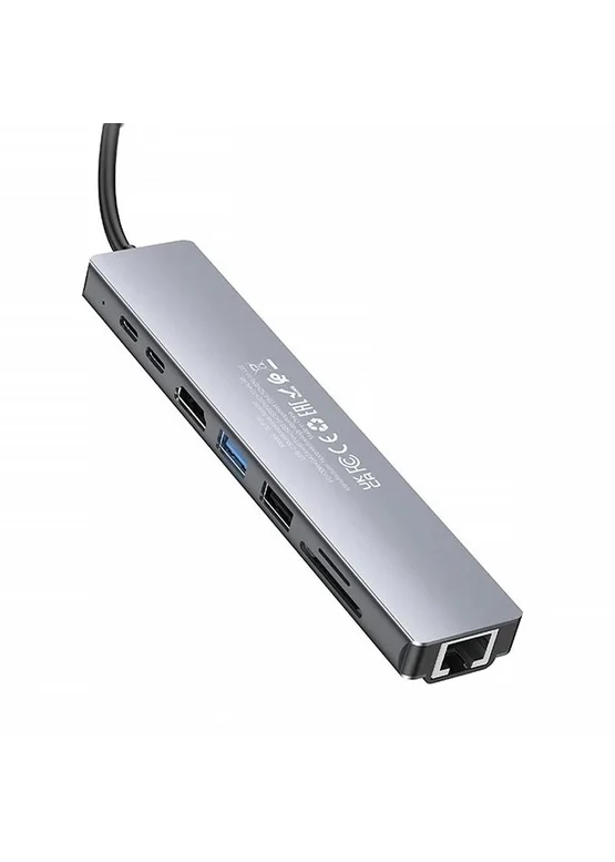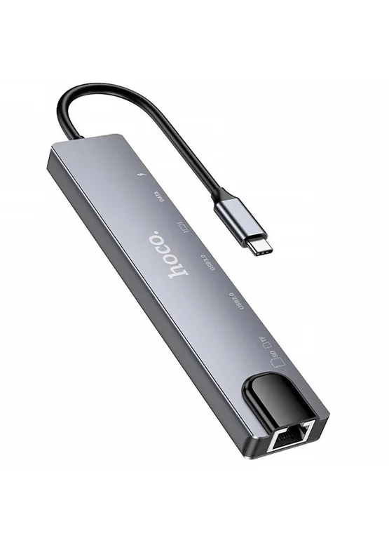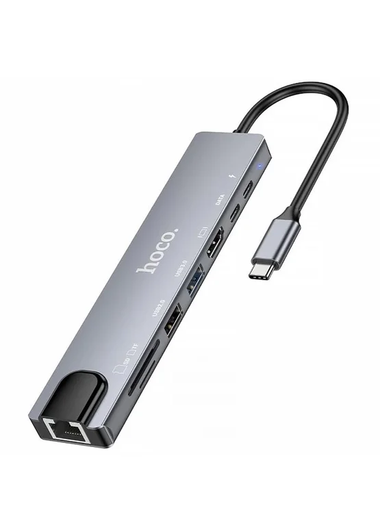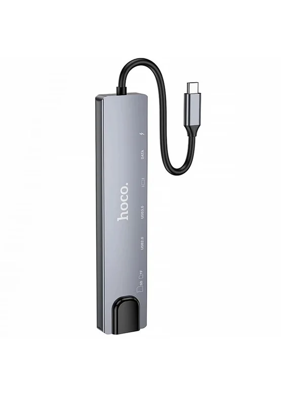 Переходник HUB Hoco DUP09 (Type-C to HDMI+USB 3.0+USB 2.0+2xType-C+SD/TF) Silver