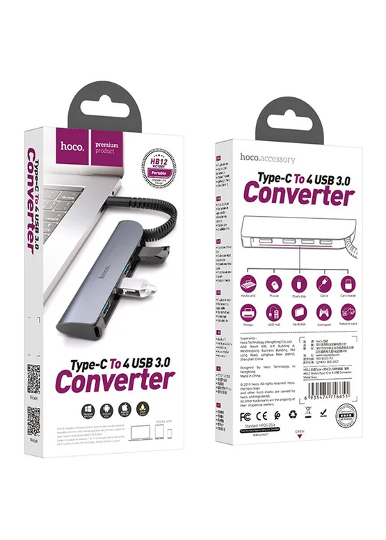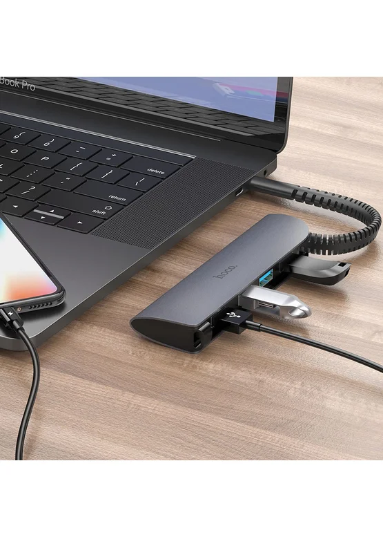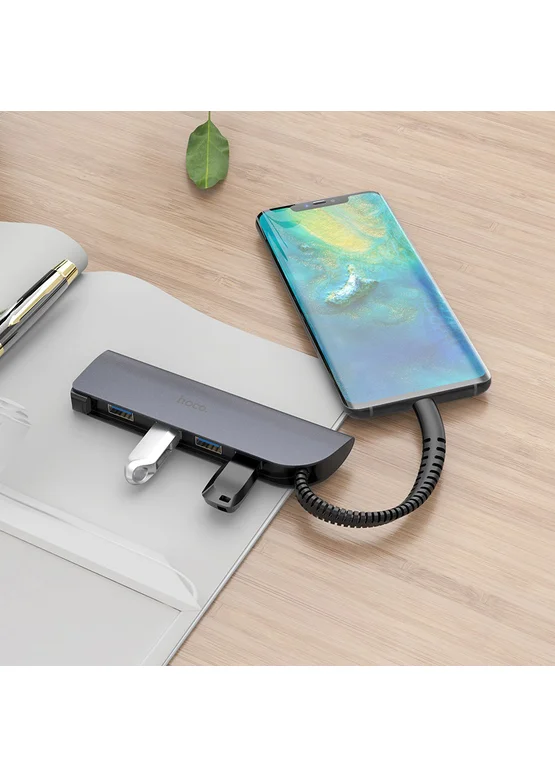 Переходник HUB Hoco HB12 Type-C (Серый)