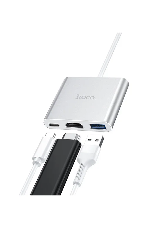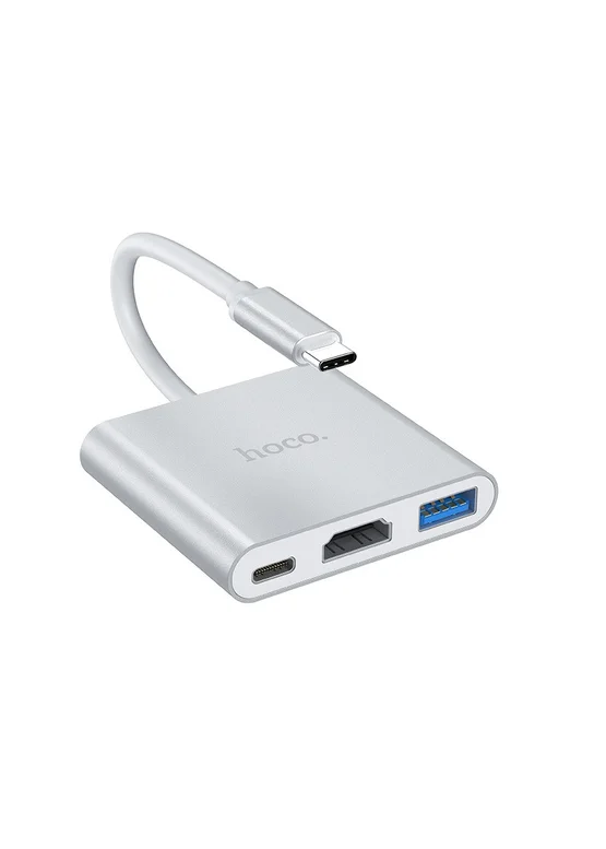 Переходник HUB Hoco HB14 Type-C to USB3.0+HDMI+PD (Стальной)