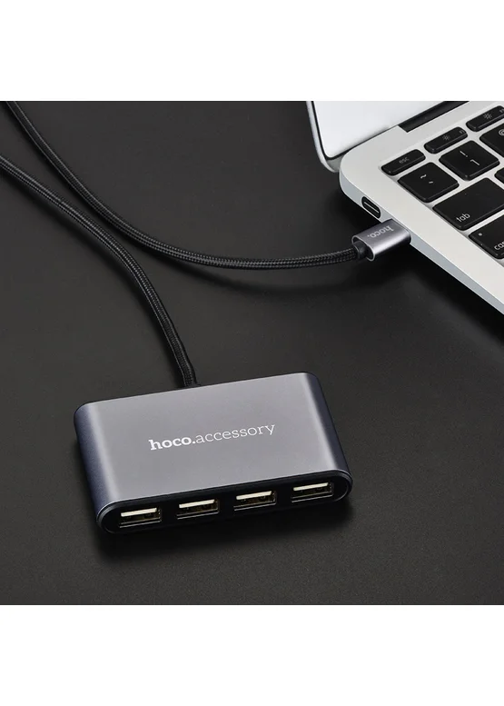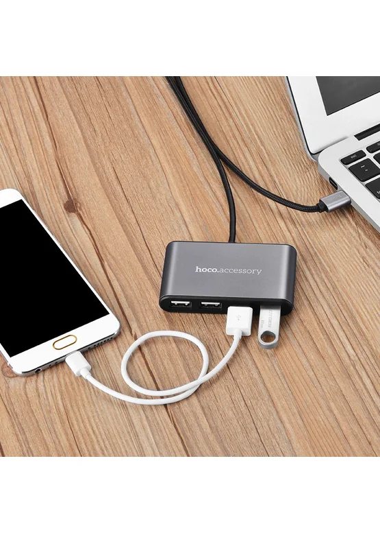 Переходник HUB Hoco HB3 USB to Type-C (Стальной)