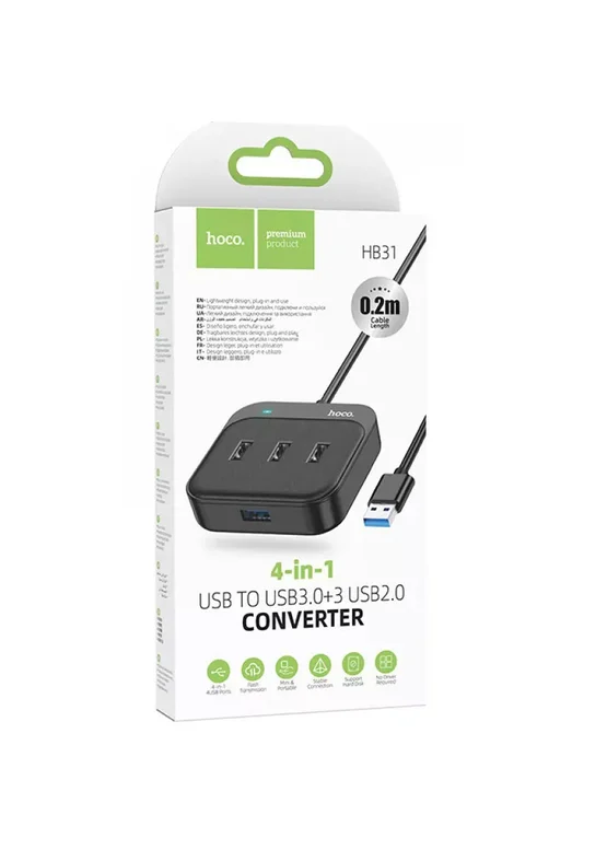 Переходник HUB Hoco HB31 Easy 4-in-1 (USB to USB3.0*4) (L=0.2m) Black