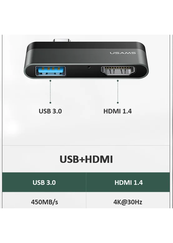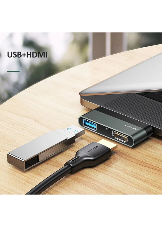 Переходник HUB Usams US-SJ462 Type-C Mini Hub (USB + HDMI) Серый