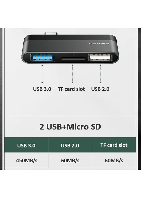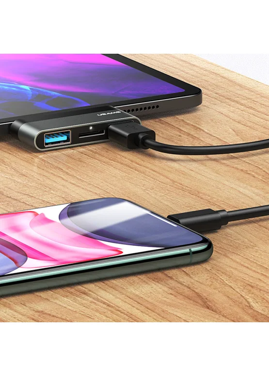 Переходник HUB Usams US-SJ463 Type-C Mini Hub (2USB + Micro SD) Серый