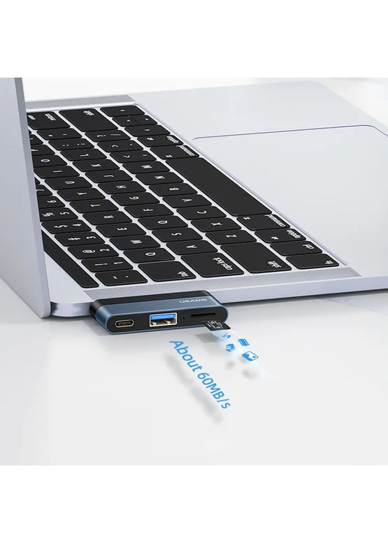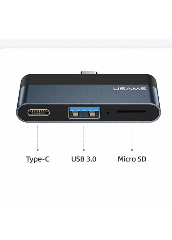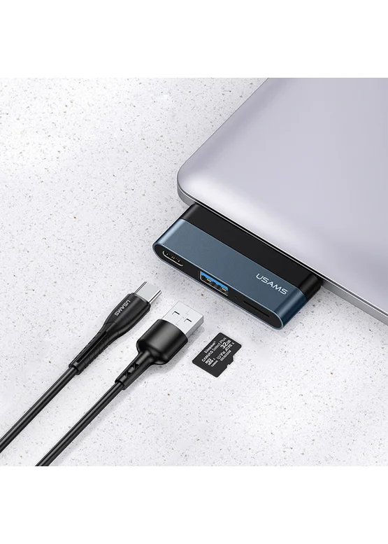 Переходник HUB Usams US-SJ491 Type-C Mini Hub (Type-C + USB + Micro SD) Темно-серый