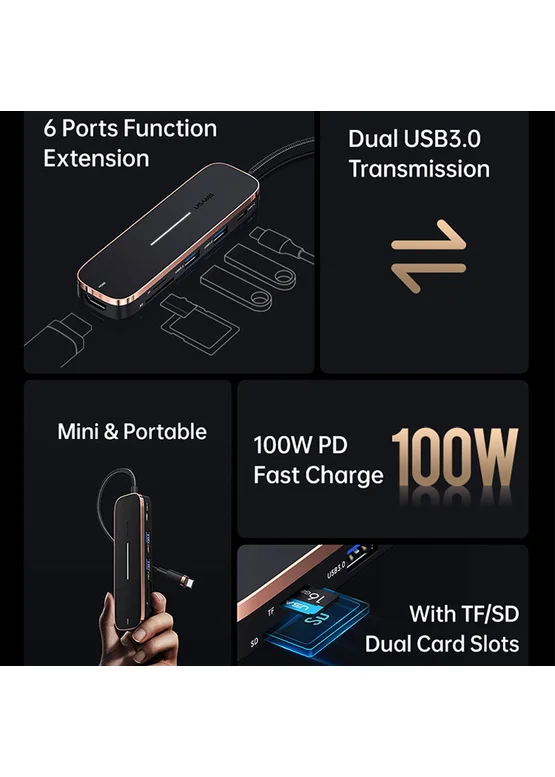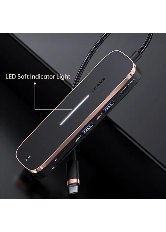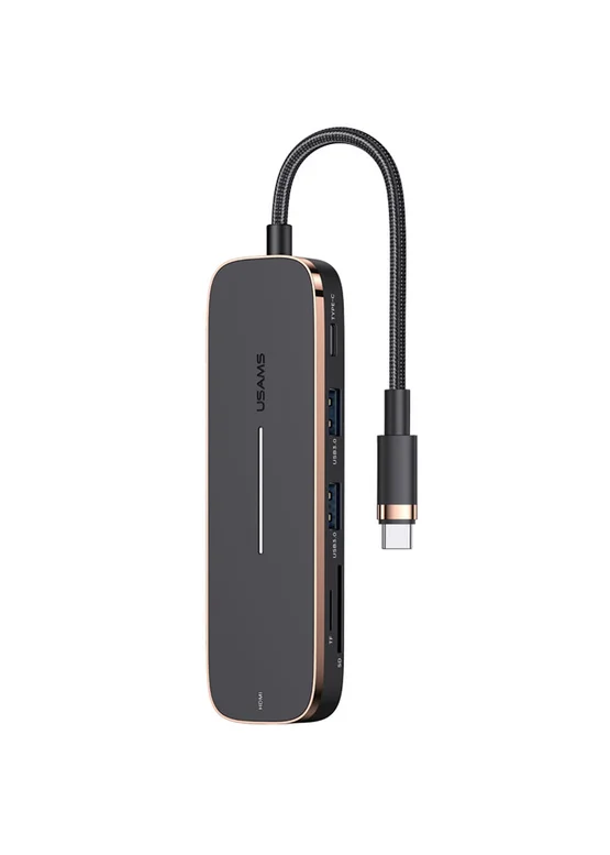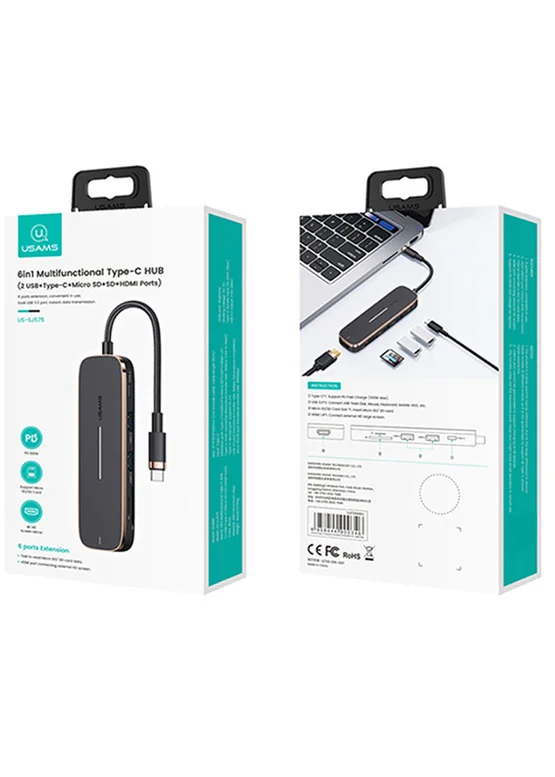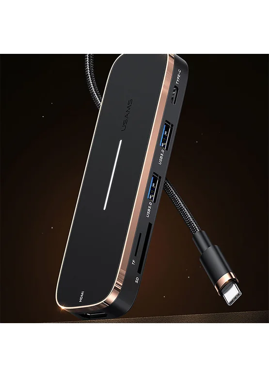 Переходник HUB Usams US-SJ575 6in1 Multifunctional (Type-C to 2USB+Type-C+Micro SD+SD+HDMI ports) Black