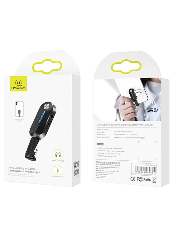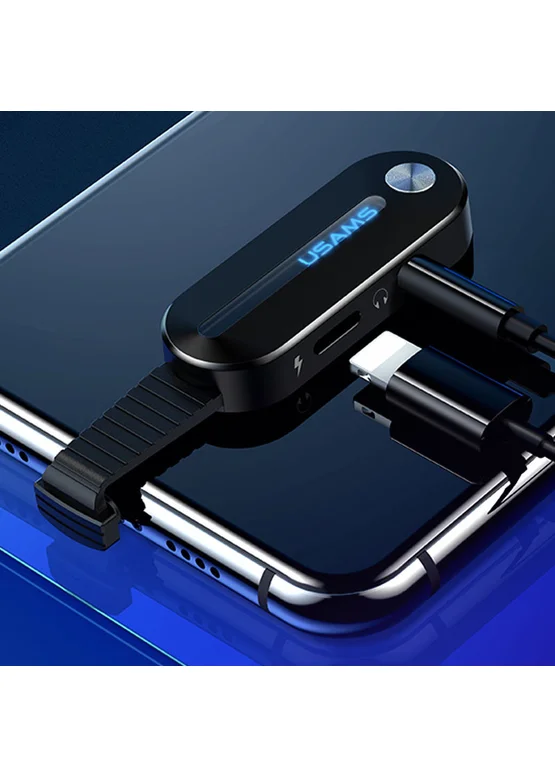 Переходник Usams US-SJ358 AU10 Lightning to 3.5mm + Lightning, LED light (Черный)