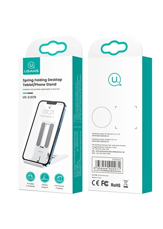 Подставка для телефона/планшета Usams US-ZJ070 Spring Folding Desktop (bellow 12") White