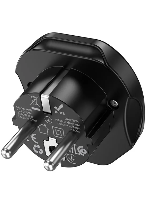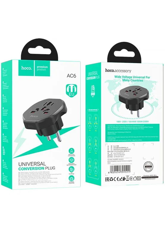 Сетевой универсальный переходник Hoco AC6 3in1 (EU) Black