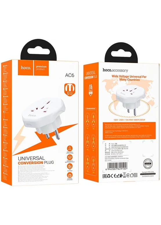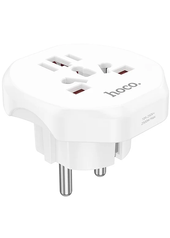 Сетевой универсальный переходник Hoco AC6 3in1 (EU) White