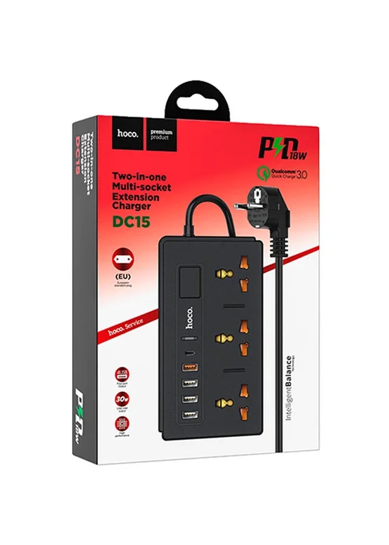 Удлинитель Hoco DC15 (4USB/1Type-C/3xSocket) Черный