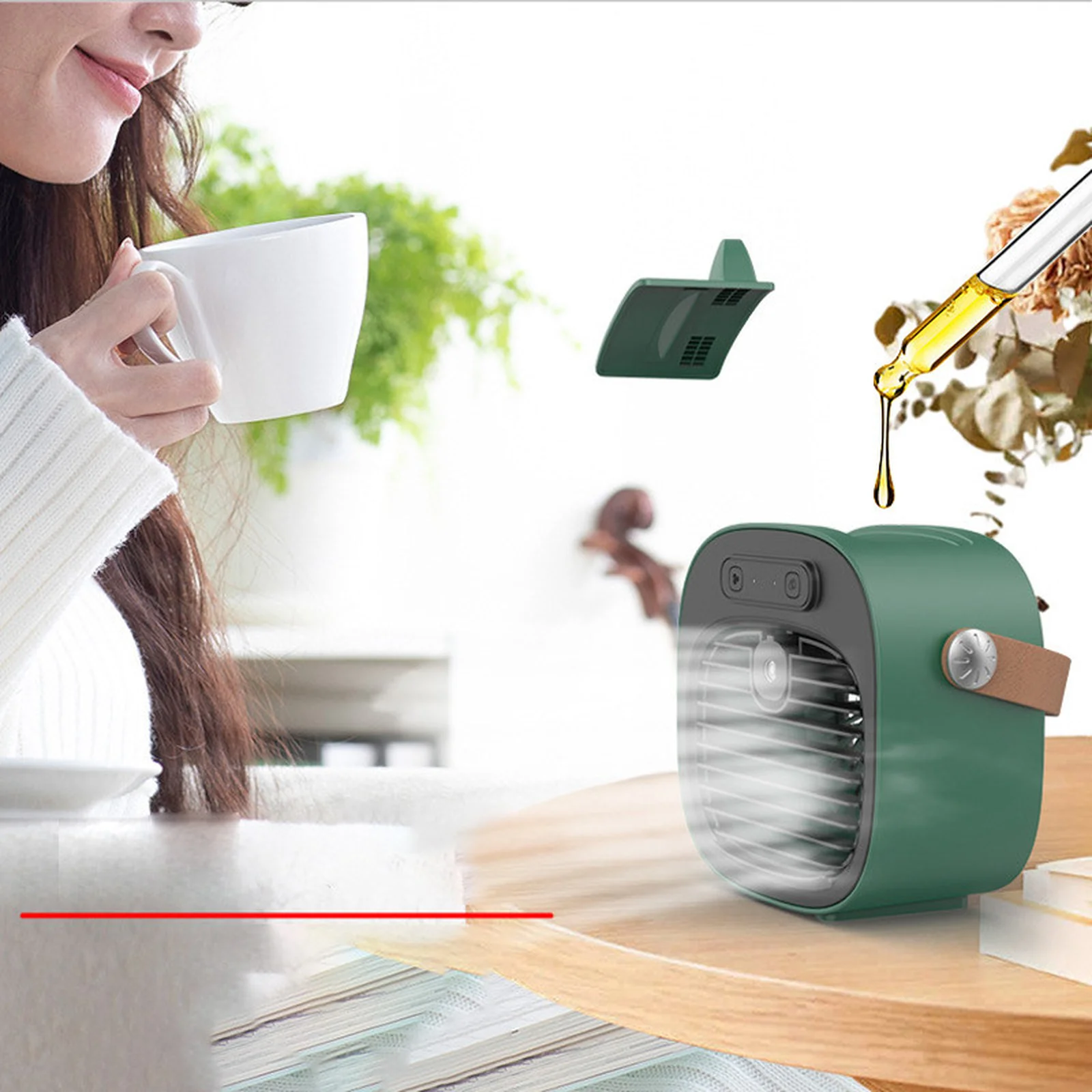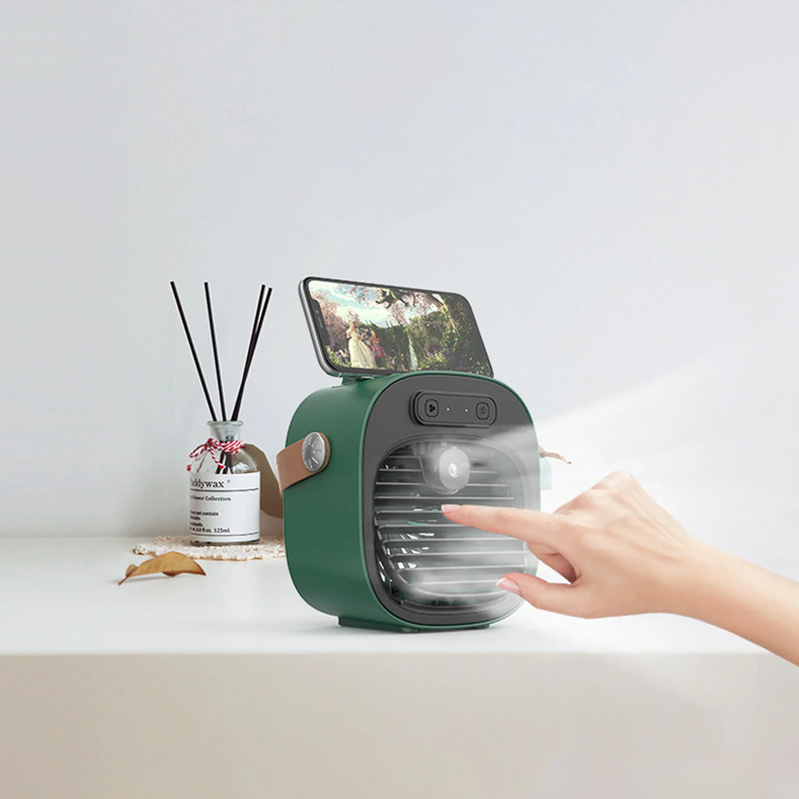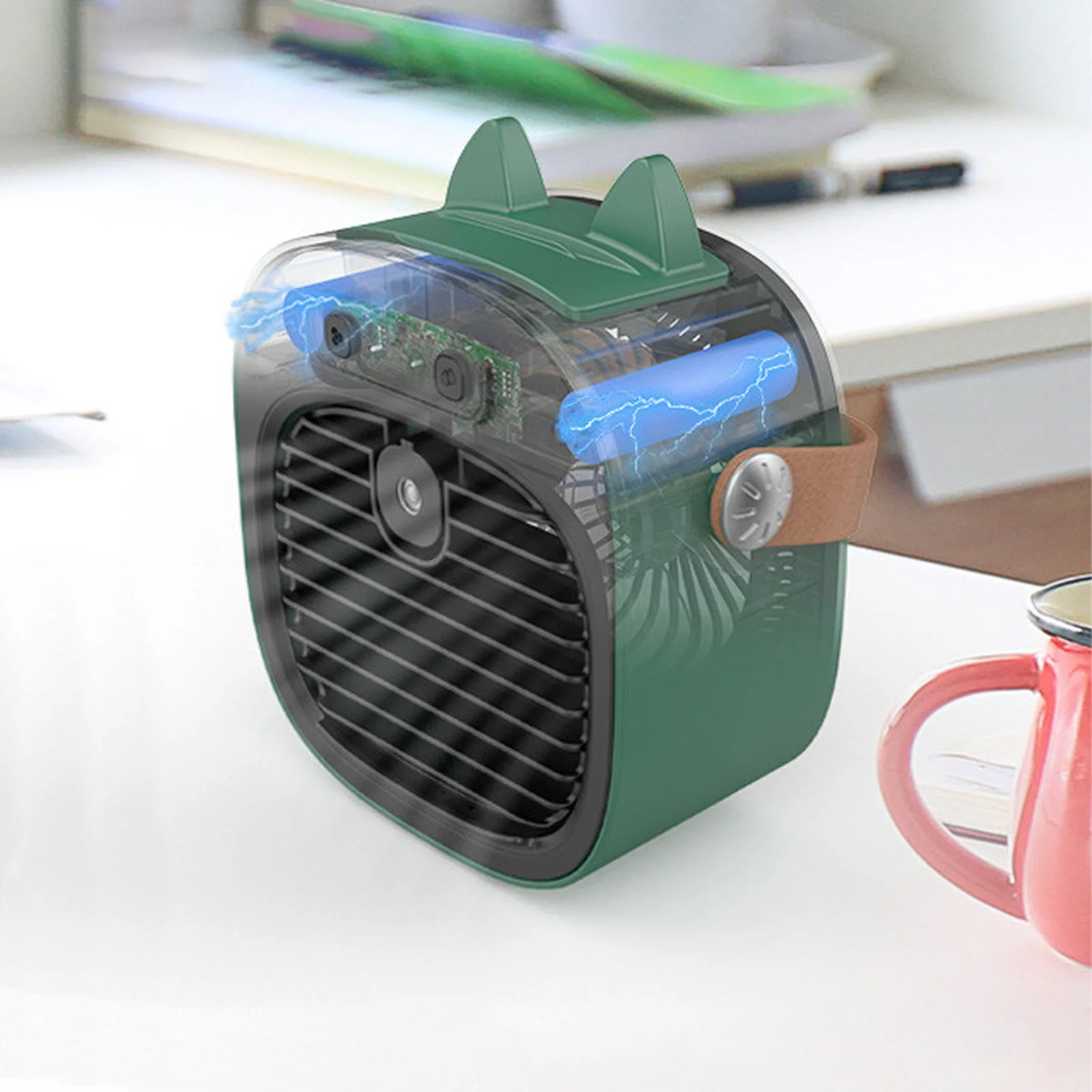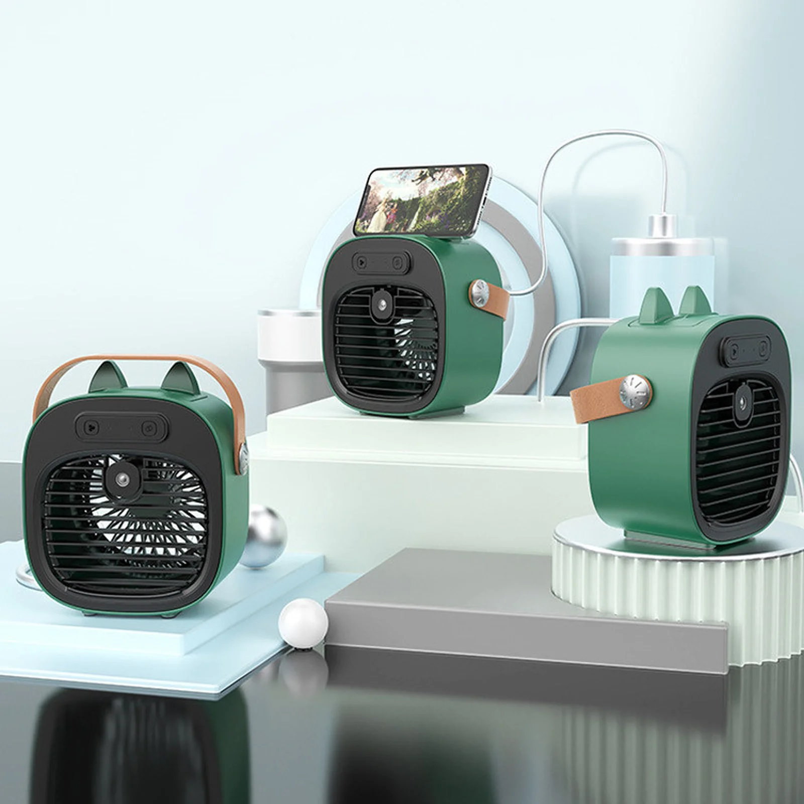Настольный вентилятор F12 с подставкой для телефона и водяным охлаждением 4000mAh