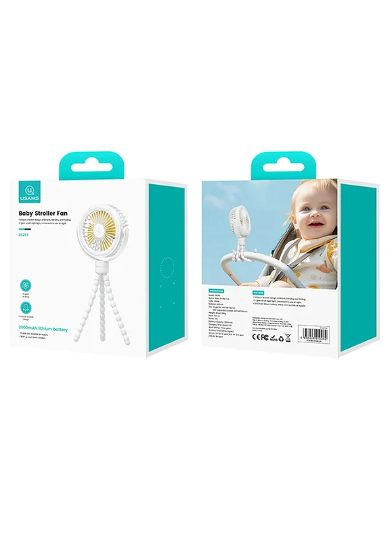 Портативный вентилятор Usams ZB289 Baby Stroller fan 2000mAh White