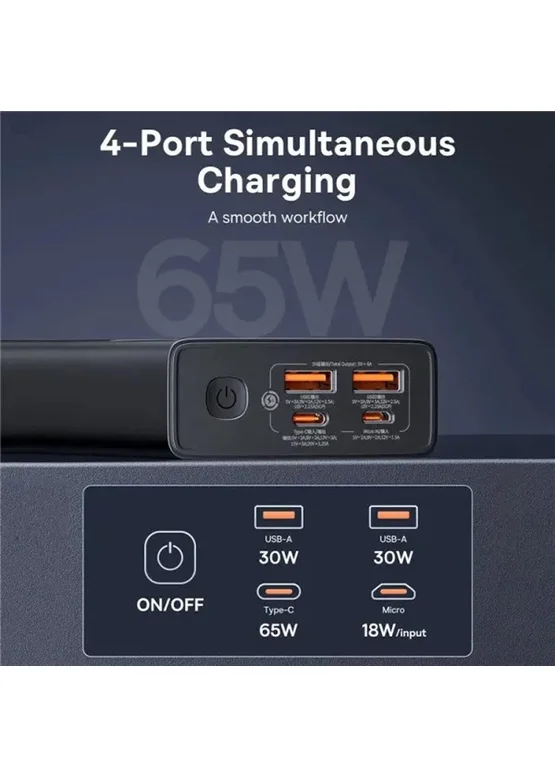- USB-C: 5V/3A, 9V/3A, 12V/3A, 15V/3A, 20V/3.25A (PD 65W Max)