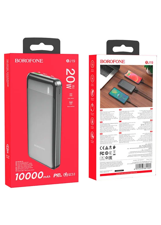 Портативное зарядное устройство Power Bank BOROFONE BJ19 Incredible PD20W+QC3.0 10000 mAh Черный