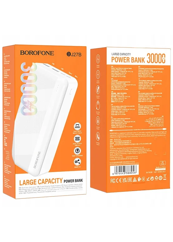 Портативное зарядное устройство Power Bank BOROFONE BJ27B 30 000 mAh White