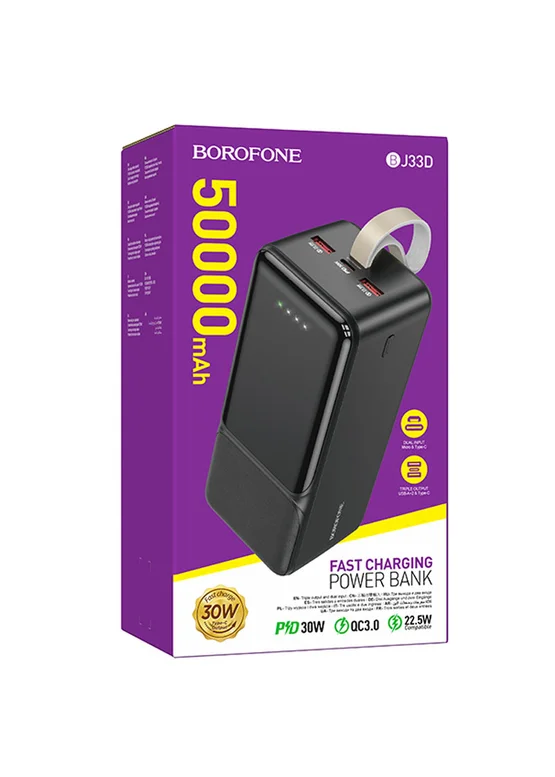 Портативное зарядное устройство Power Bank BOROFONE BJ33D PD30W 50000 mAh Black