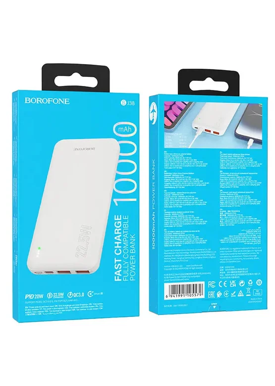 Портативное зарядное устройство Power Bank BOROFONE BJ38 22.5W+PD20W 10 000 mAh White