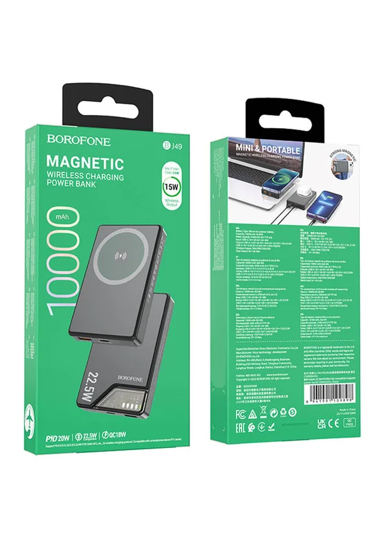 Портативное зарядное устройство Power Bank BOROFONE BJ49 Astute 22.5W+PD20W С БЗУ 10000 mAh Black