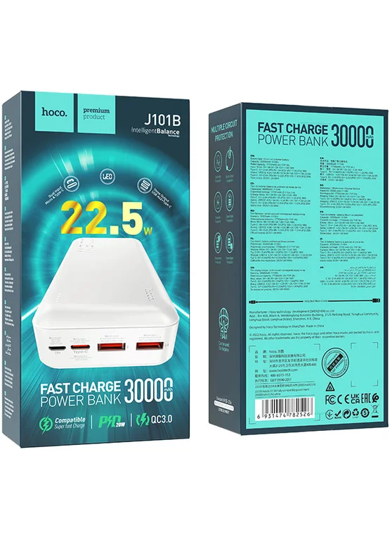 Портативное зарядное устройство Power Bank Hoco J101B Astute PD20W+22.5W 30000 mAh Белый