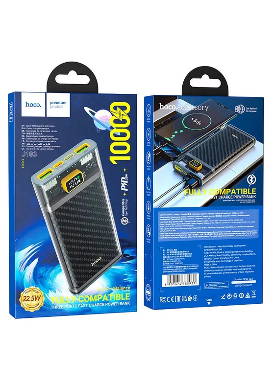 Портативное зарядное устройство Power Bank Hoco J103 PD20W+22.5W 10000 mAh Gray