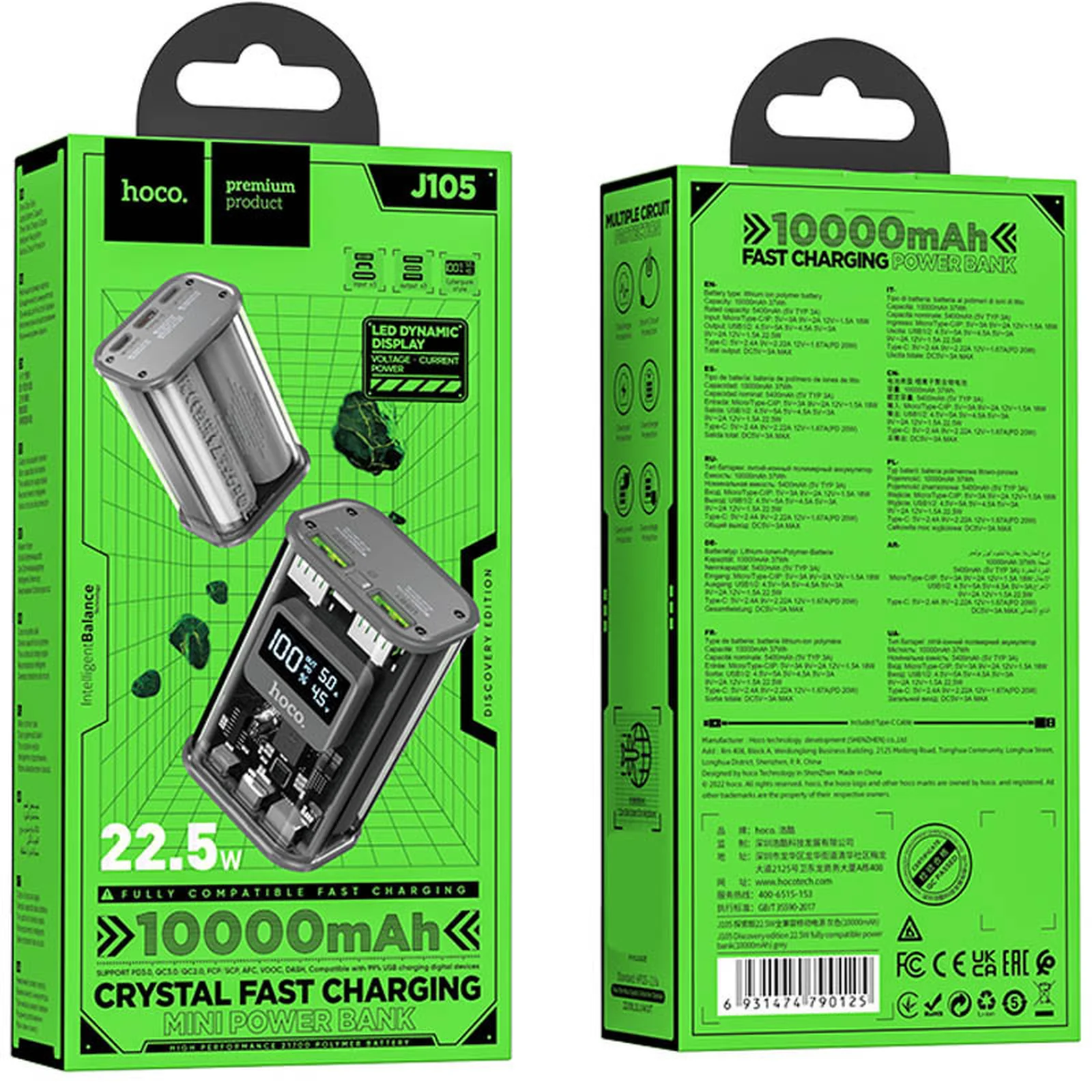 Портативное зарядное устройство Power Bank Hoco J105 Discovery Edition 22.5W 10000 mAh Gray