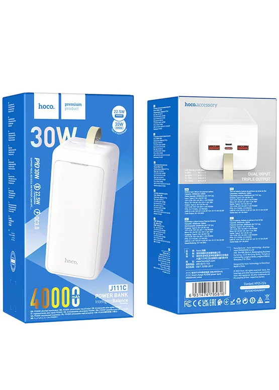 Портативное зарядное устройство Power Bank Hoco J111C Smart charge PD30W 40 000 mAh White