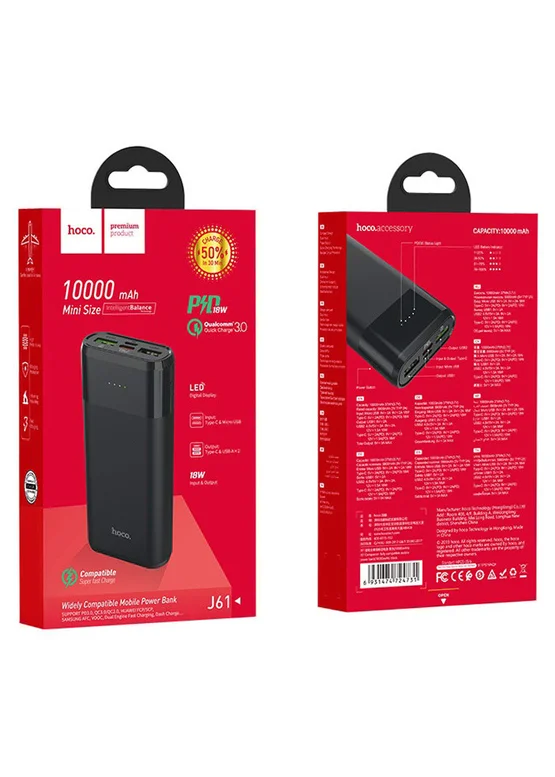 Портативное зарядное устройство Power Bank Hoco J61 Companion 10000 mAh Черный
