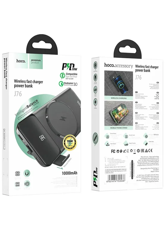 Портативное зарядное устройство Power Bank Hoco J76 Bobby 10000 mAh Черный