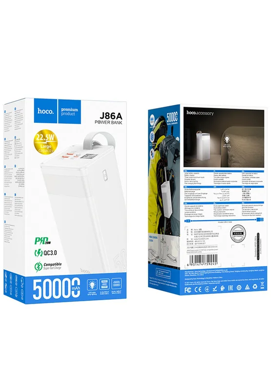 Портативное зарядное устройство Power Bank Hoco J86A Powermaster 22.5W 50000 mAh White
