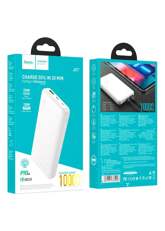 Портативное зарядное устройство Power Bank Hoco J87 Tacker PD20W+QC3.0 10000 mAh Белый