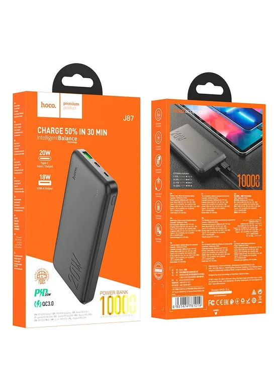 Портативное зарядное устройство Power Bank Hoco J87 Tacker PD20W+QC3.0 10000 mAh Черный