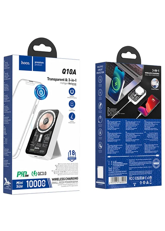 Портативное зарядное устройство Power Bank Hoco Q10A Transparent PD20W с БЗУ 10 000 mAh White