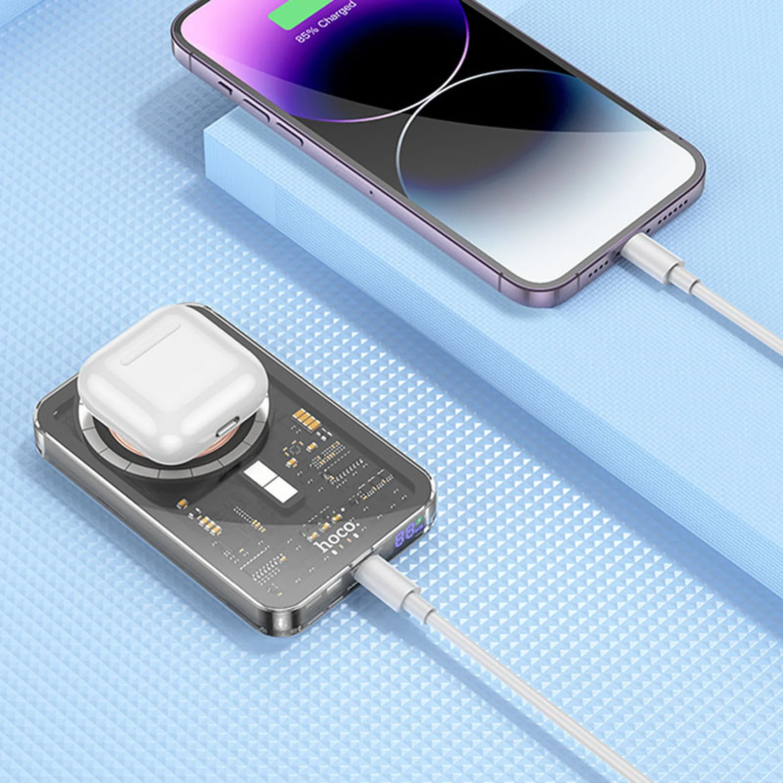 Портативное зарядное устройство Power Bank Hoco Q14 Ice Crystal PD20W с БЗУ 5000 mAh Black